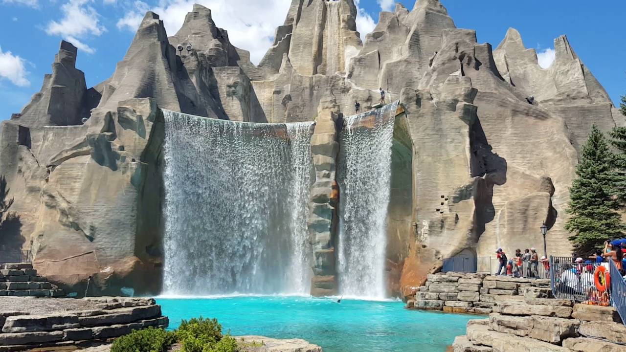 Large waterfall serving as a centrepiece at Canada’s Wonderland.